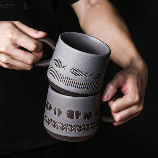 Embossed Faraway Mountain Ceramic Mug Mug Tea Cup High Grade Gift Box