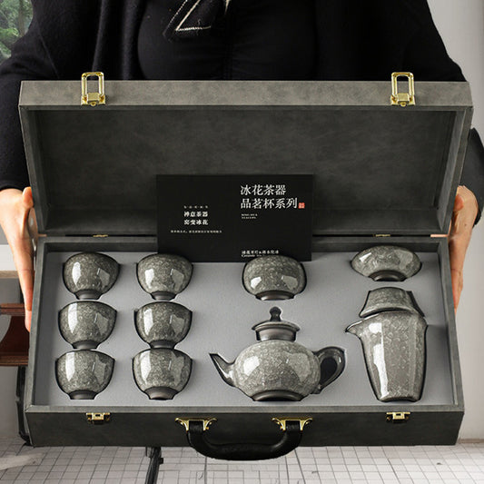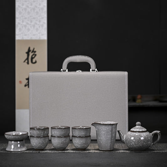 Black Ice Crack Ceramic Kung Fu Tea Set Teapot Teacup High Grade Gift Box